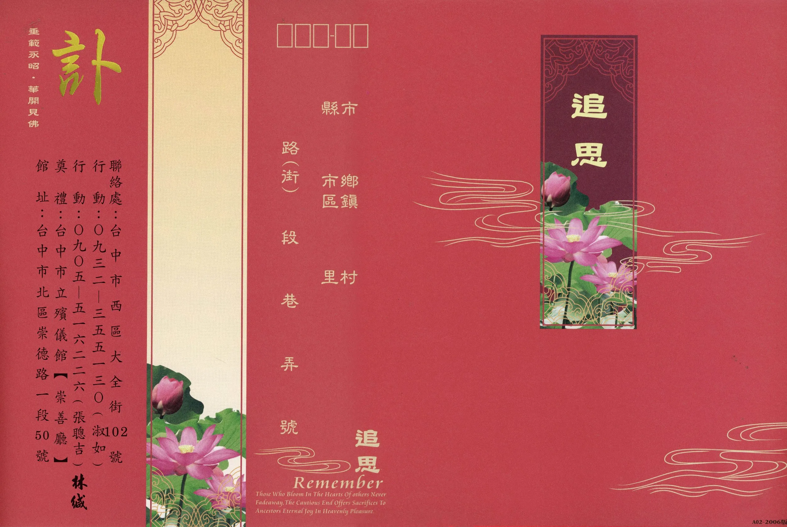 追思會場:台中市北區崇德路一段50號 崇善廳